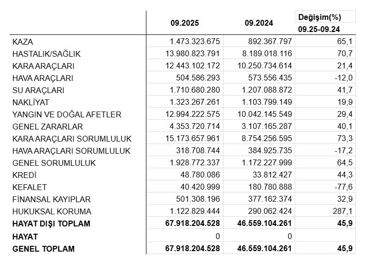 Branşlara göre Anadolu Sigorta’nın 2025 yılı 9 aylık prim üretimleri şu şekilde:
