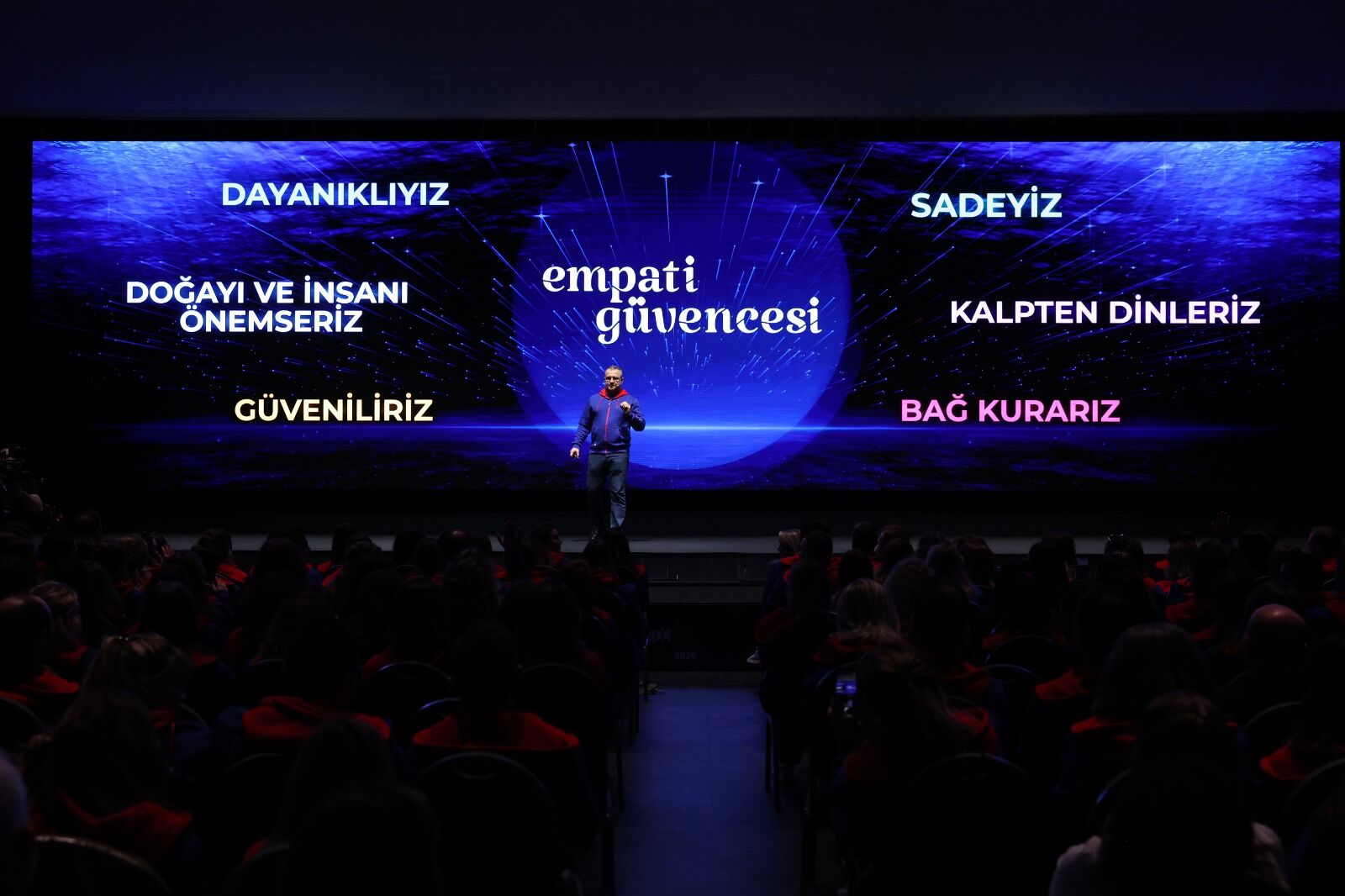 1100’ü aşkın AXAlının katılımıyla gerçekleştirilen #axadaş Buluşması, AXA Türkiye çalışanlarını ortak hedefler etrafında bir araya getirdi. Organizasyonda AXA Türkiye CEO’su Yavuz Ölken, 2025 yılına ilişkin değerlendirmelerini paylaşırken 2026 hedeflerini aktardı. Ölken buluşmada, ‘Köklerim AXA’da, Kalbim İnsanda’ mottosuyla, kökleriyle öne çıkan Mangrove ağacından ilham alarak 6 adımda kurgulanan 2030 Adaptif Sigortacılık dönüşüm yolculuğunu paylaştı; bu yolculuğun merkezindeki en güçlü kavramın ise “Empati Güvencesi” olduğunu vurguladı: